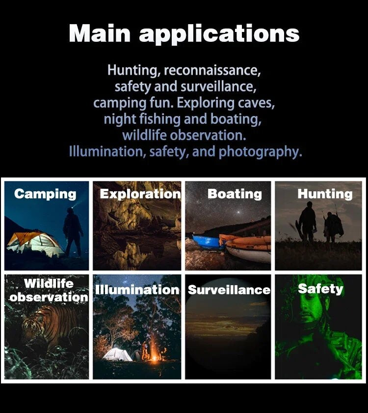 The night vision are equipped with a high-performance battery to ensure the power requirements for prolonged usage. With its lightweight and adjustable wearing style, it's easy to carry, allowing users to embark on adventures at any time. Additionally, the multiple connectivity options enable it to connect with other devices, further expanding its functionality and use cases. Whether there's a need for real-time image transmission, data exchange, or other interactive operations, these night vision goggles can meet those demands.