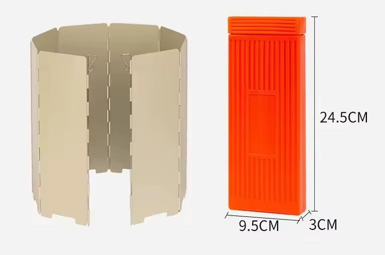 The light-weight and portable gas stove windshield has 10pcs of plates. You can change the shape due to your stove size and your needs. This stove windshield can be folded and put into attached plastic storage case.