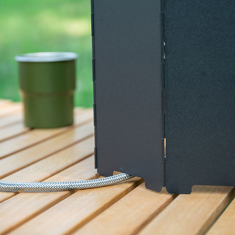 A hose hole is provided so that single burner’s hose can pass through this wind screen, if your running gas.