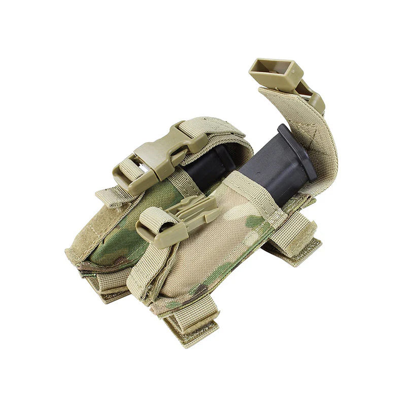 It features a quick release buckle system that proves critical when you need fast access to your gun. It also provides two removable, large, horizontal magazine pouches with easy buckle snap closures.