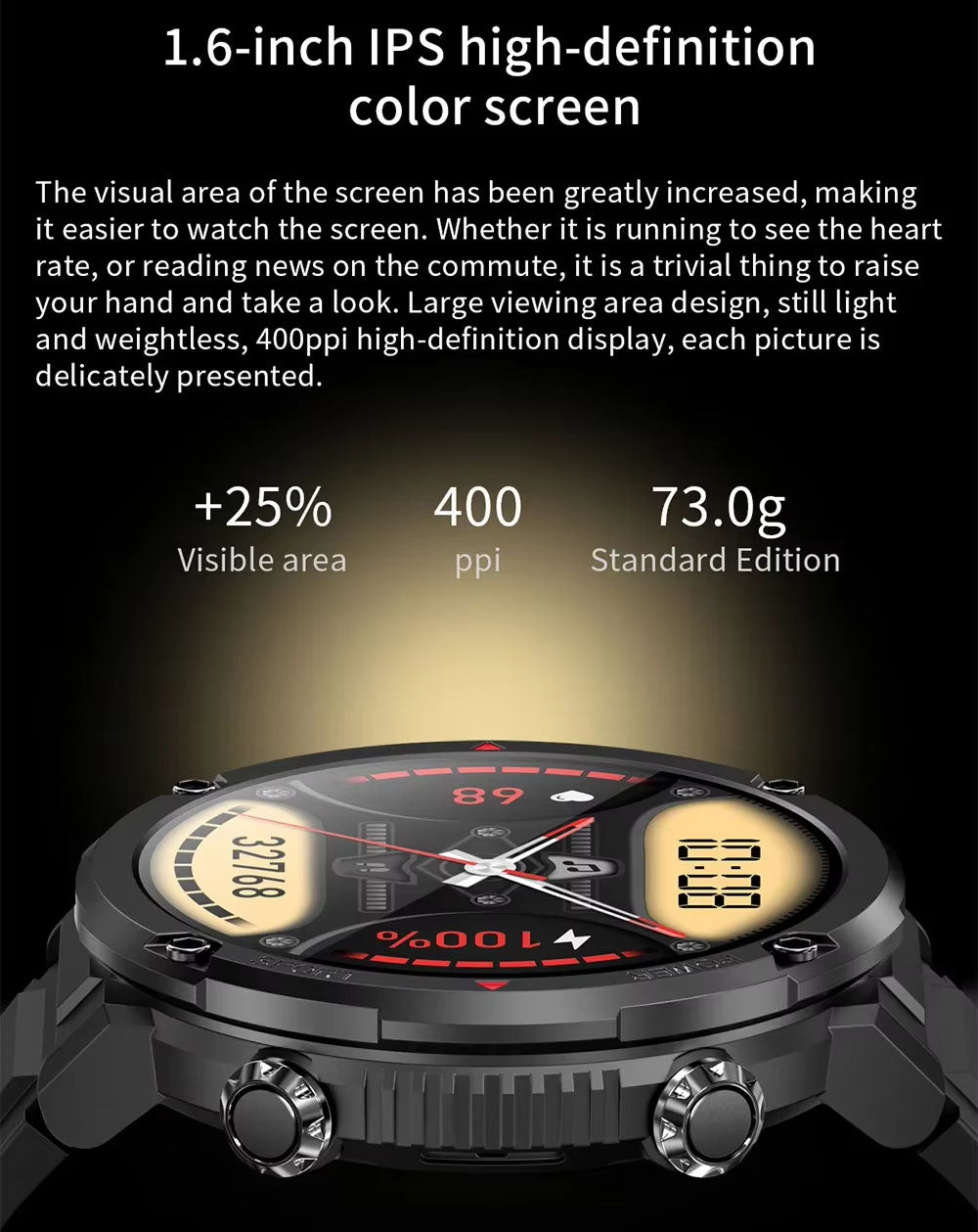*Others:Bluetooth call、Music play、Six theme styles、Raise to wake、Dial Market
