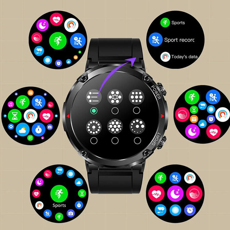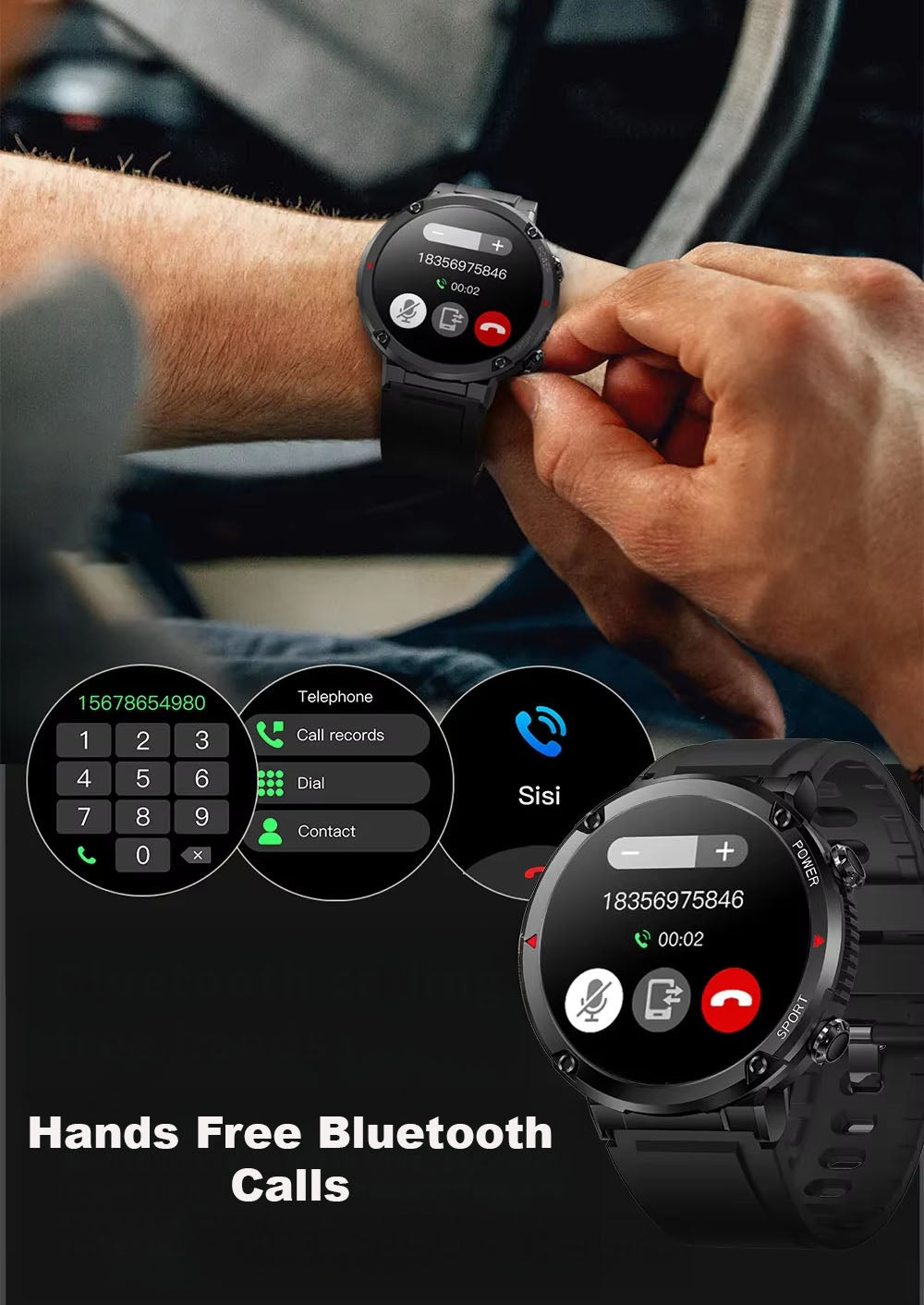 Our new Flag ship Mil-SPEC  military standard smart watch massive new 1.6 HD  round screen.