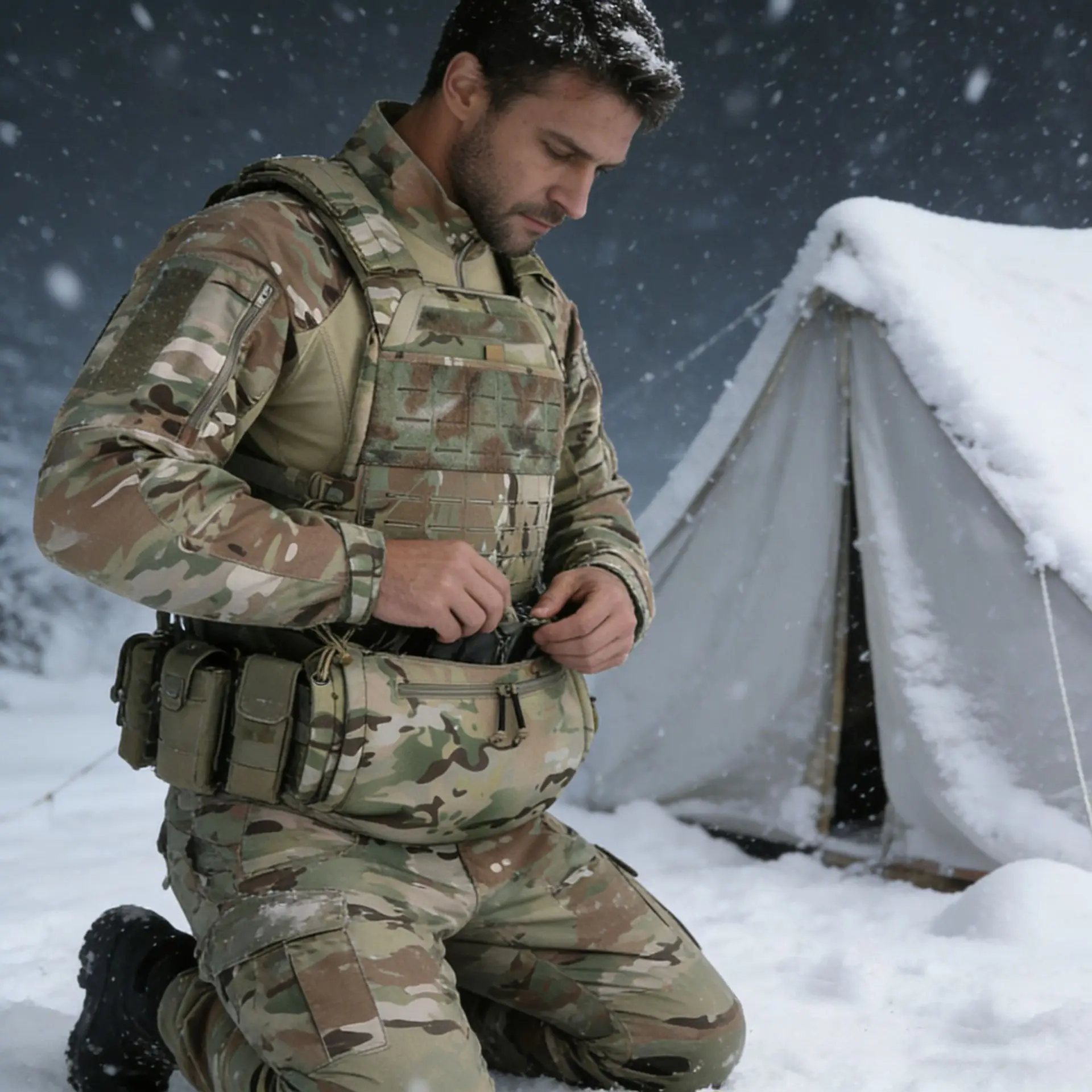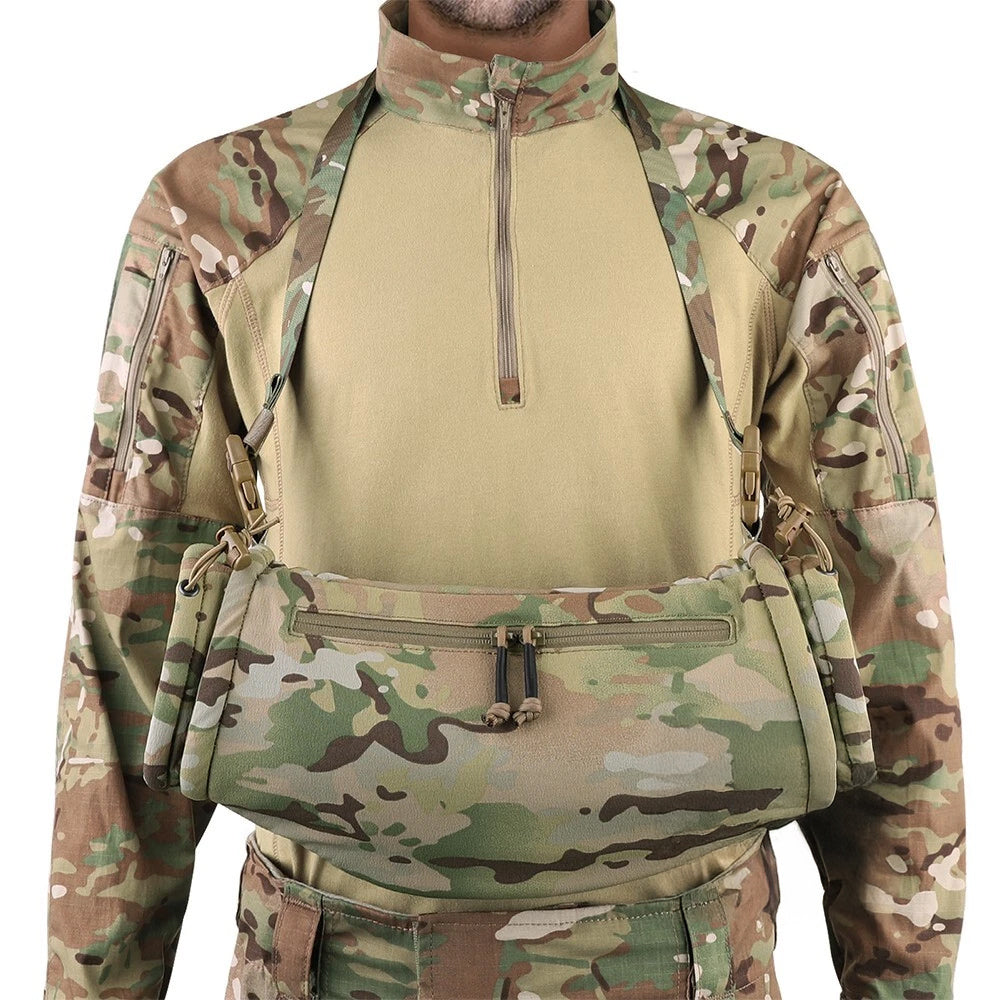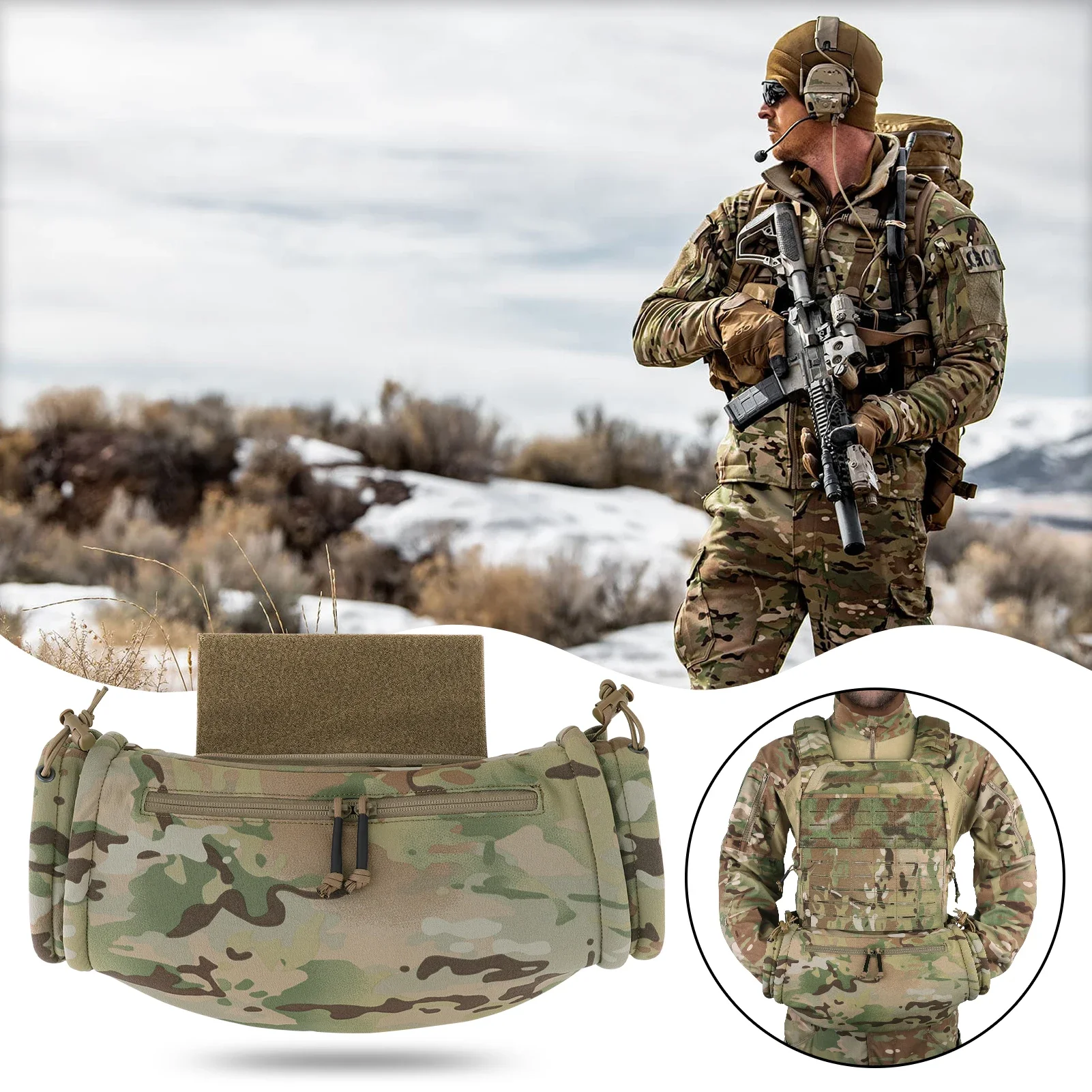 - EDC SOLUTION: This tactical vest drop pouch is a handwarmer & storage bag combination, daily use in the summer, switch-free to get ready for winter. It can be carried in hook loop way as chest rig dangler pouch, and buckle strap way as waist fanny pack shoulder bag. Compact design and slant cuff allows for quick, natural comfortable use.