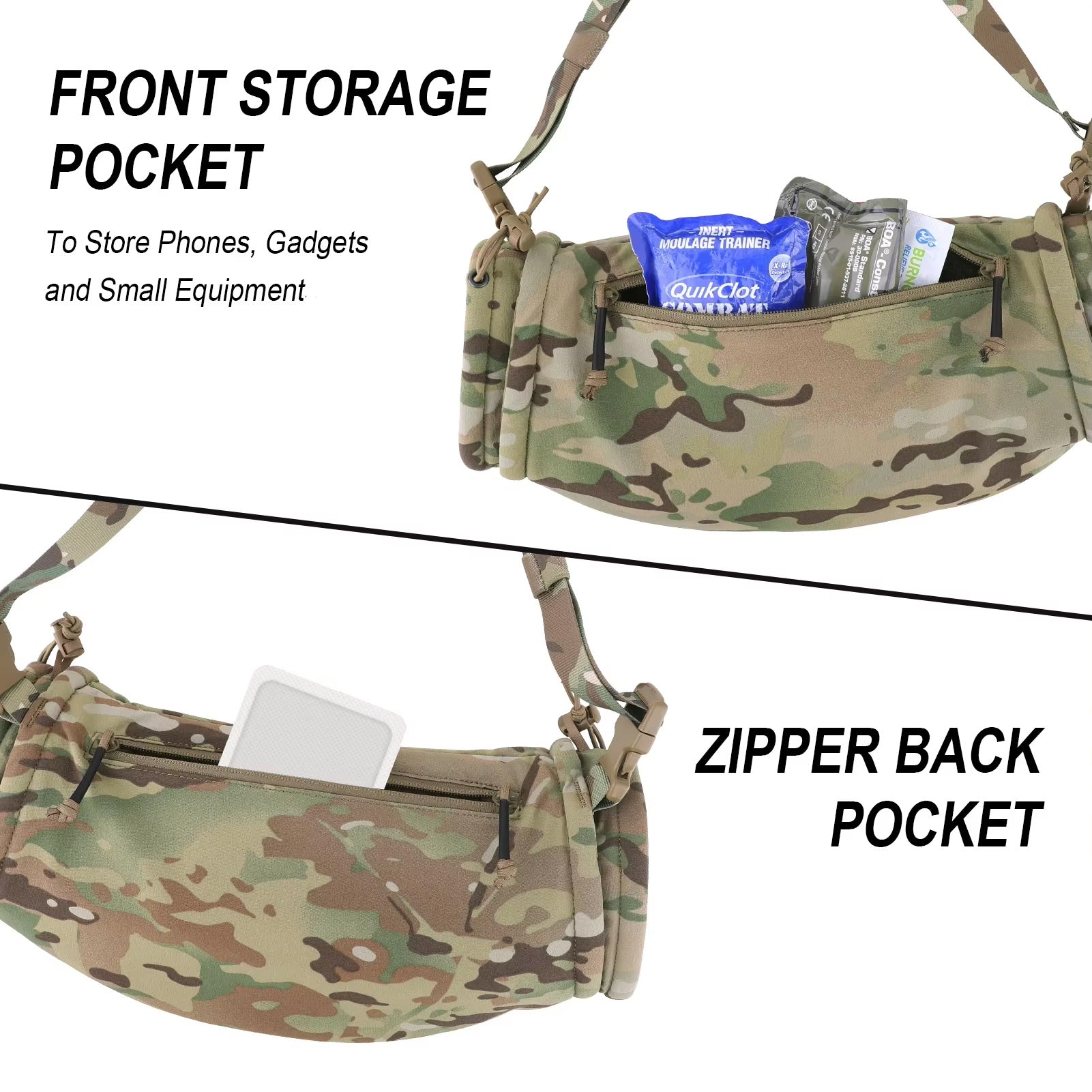 - GEAR POCKET: Outside, the zippered compartment storage pouch made of lightweight stretch fabric, allowing flexible space. On body side, the 500D wear-resistant fabric for heavy use, rolled the pouch and zippered it, the 500D fabric will wrap outside.