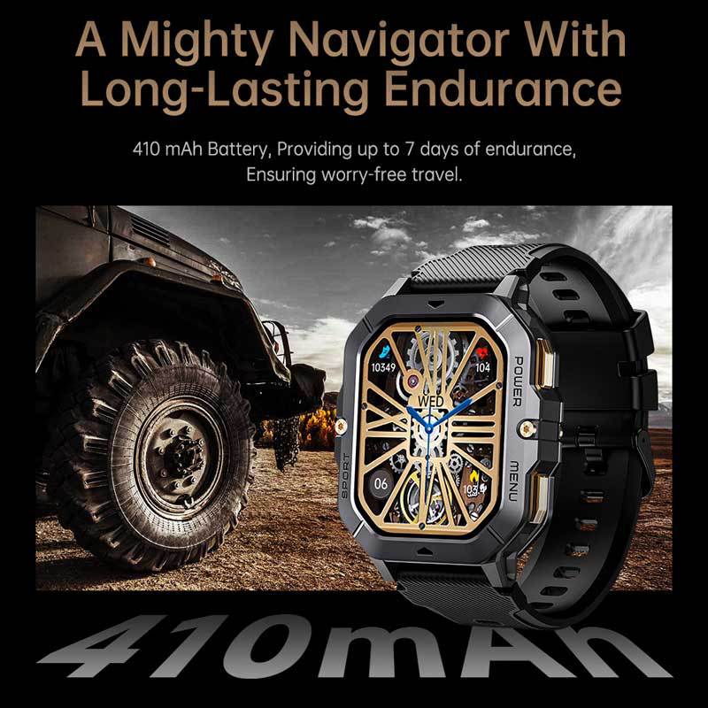 Introducing the RECON GS2U Tactical Android - IOS Big Screen HD Smart Watch, a perfect blend of style and functionality. This smartwatch features a stunning 2.02-inch HD display, making it easy to navigate through its extensive features.