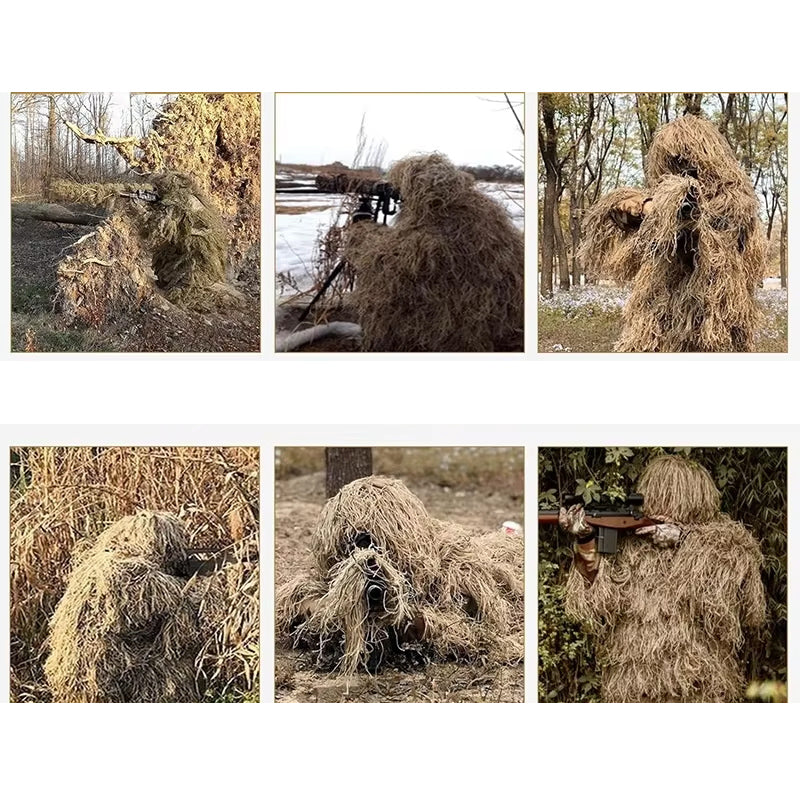 Includes jacket, pants, and hood for complete concealment from head to toe.