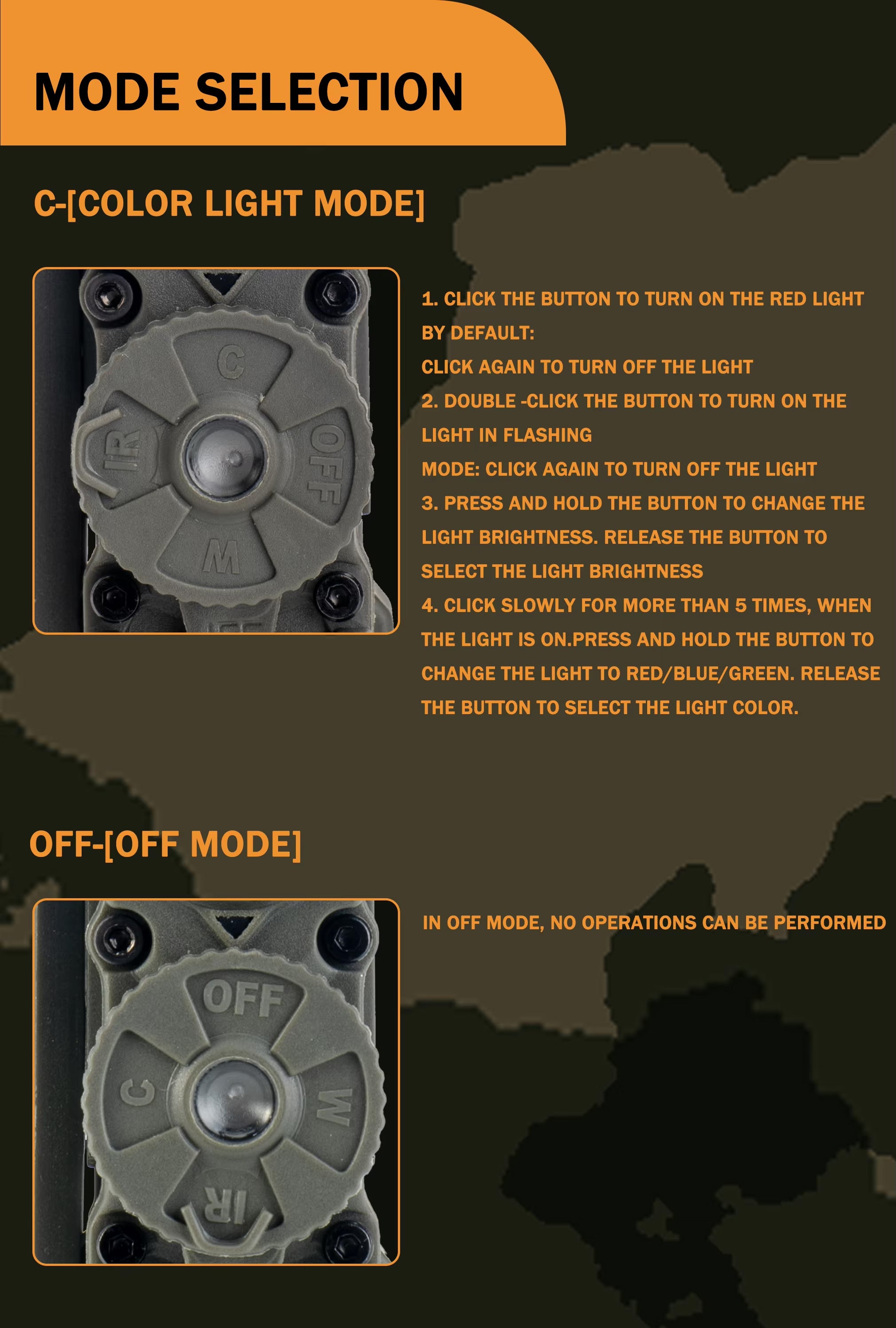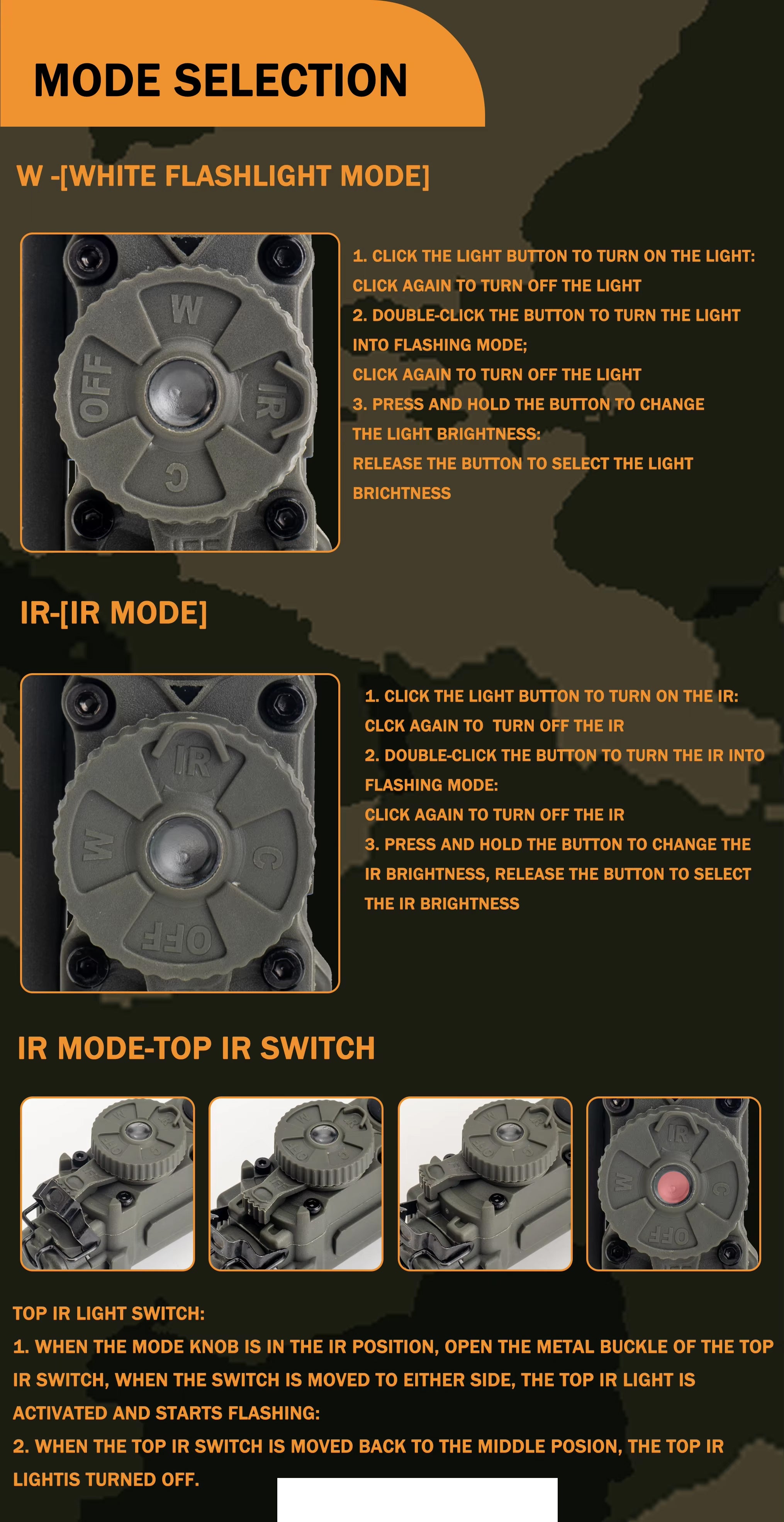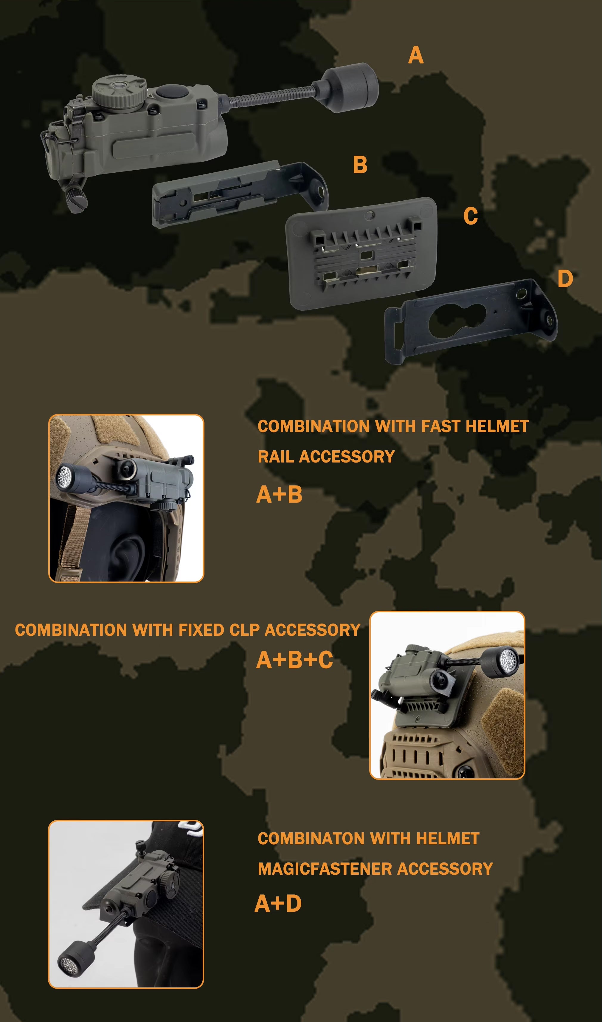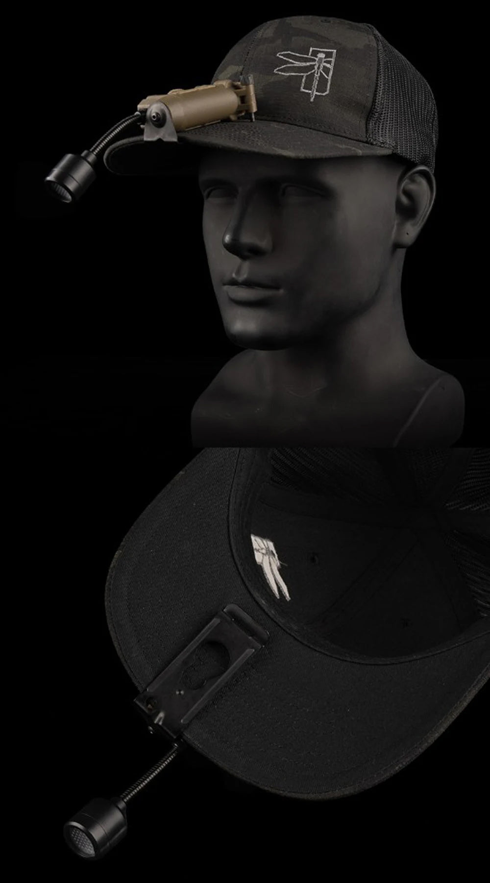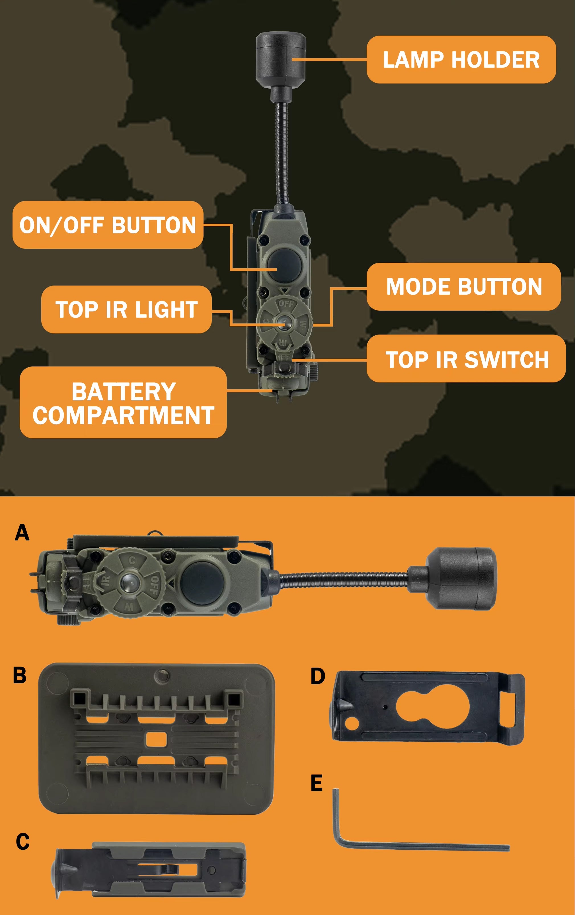 Get covert and reliable hands-free lighting with the RECON GS2 RATTLESNAKE Stalk Helmet Light. This multi-functional military helmet light features 6 LEDs, including white, IR, red, blue, green, and IFF IR to alert friendlies of your presence. A push-button power switch and rotary mode selector make operation quick and easy, while a flexible stalk allows you to focus on your target.Â