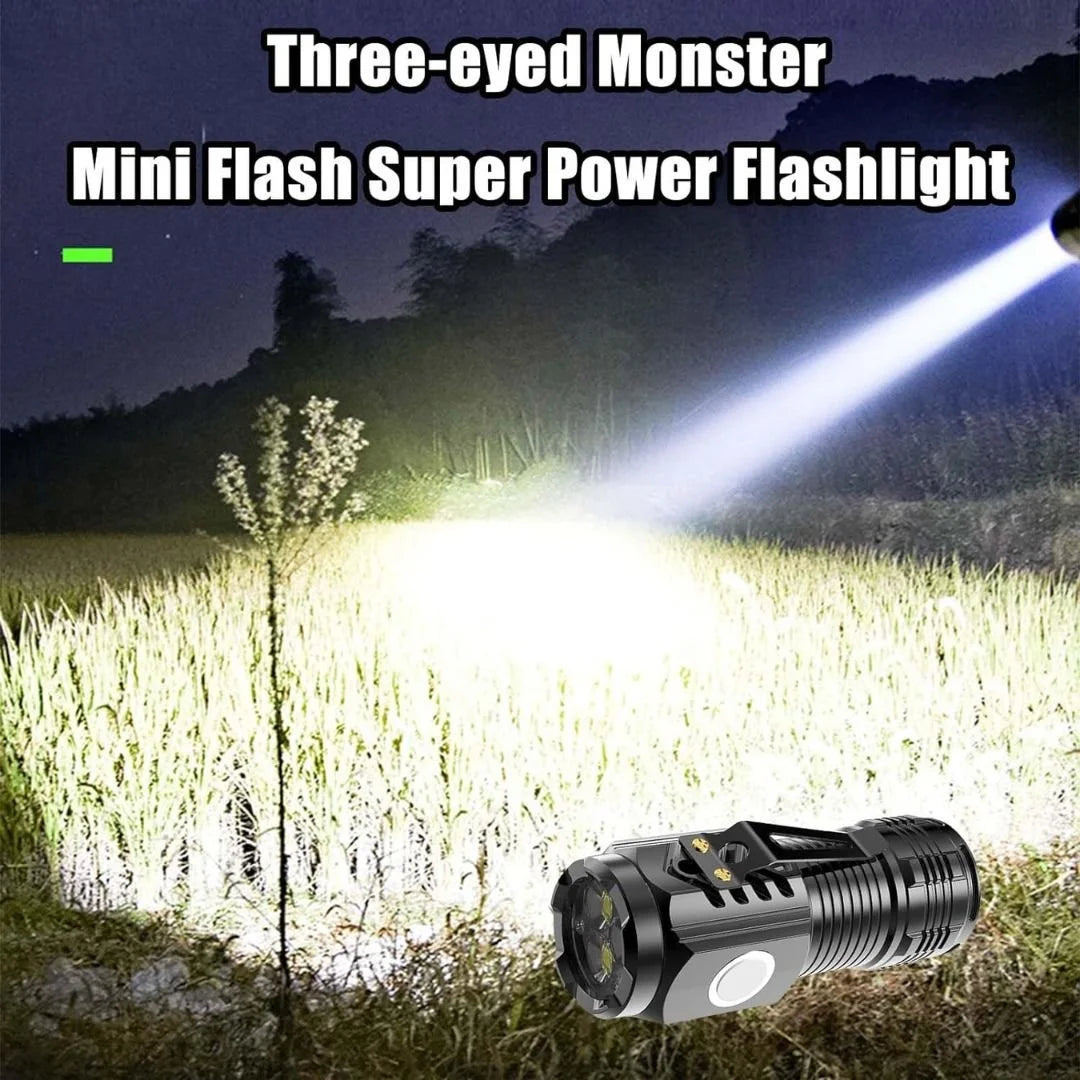 • RECON GS2 AJNA 3 Eyed Titan super high power mini LED Flashlight The Three-Eyed Titan flashlight boasts three extremely bright LED lamps that can illuminate even the darkest corners. Experience unparalleled brightness and versatility with the Three-Eyed TITAN Mini Flash Super Power flashlight!