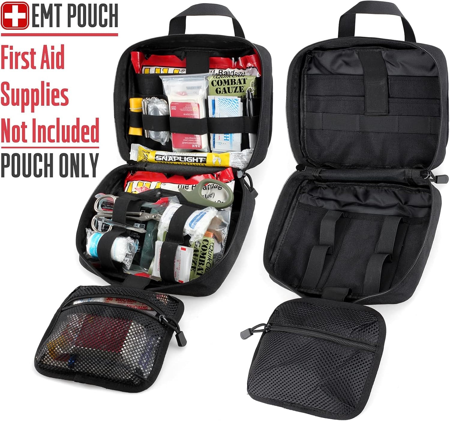 • QUICK RELEASE: Hook & Loop rear panel and wide handle allow quick access to EMT Bag, greatly saving first aid time for camping, hiking, hunting, adventure, cycling. First Aid Kit Bag works as Versatile MOLLE Accessories for on the go.