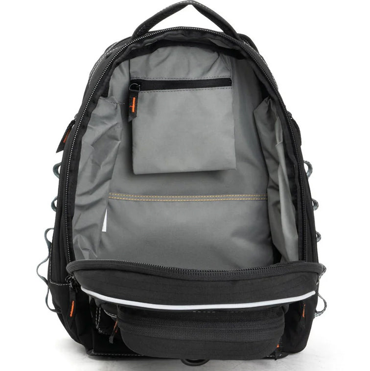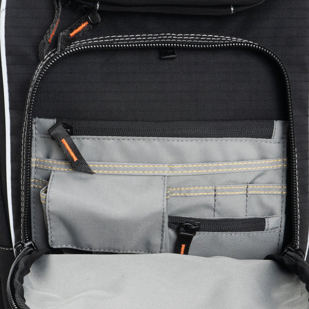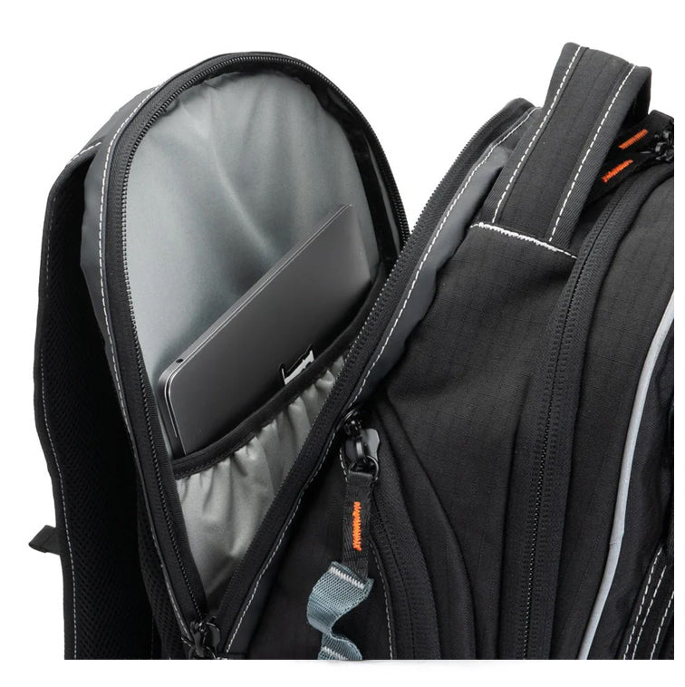 - Zippered, padded laptop pocket with suspension webbing and tablet sleeve