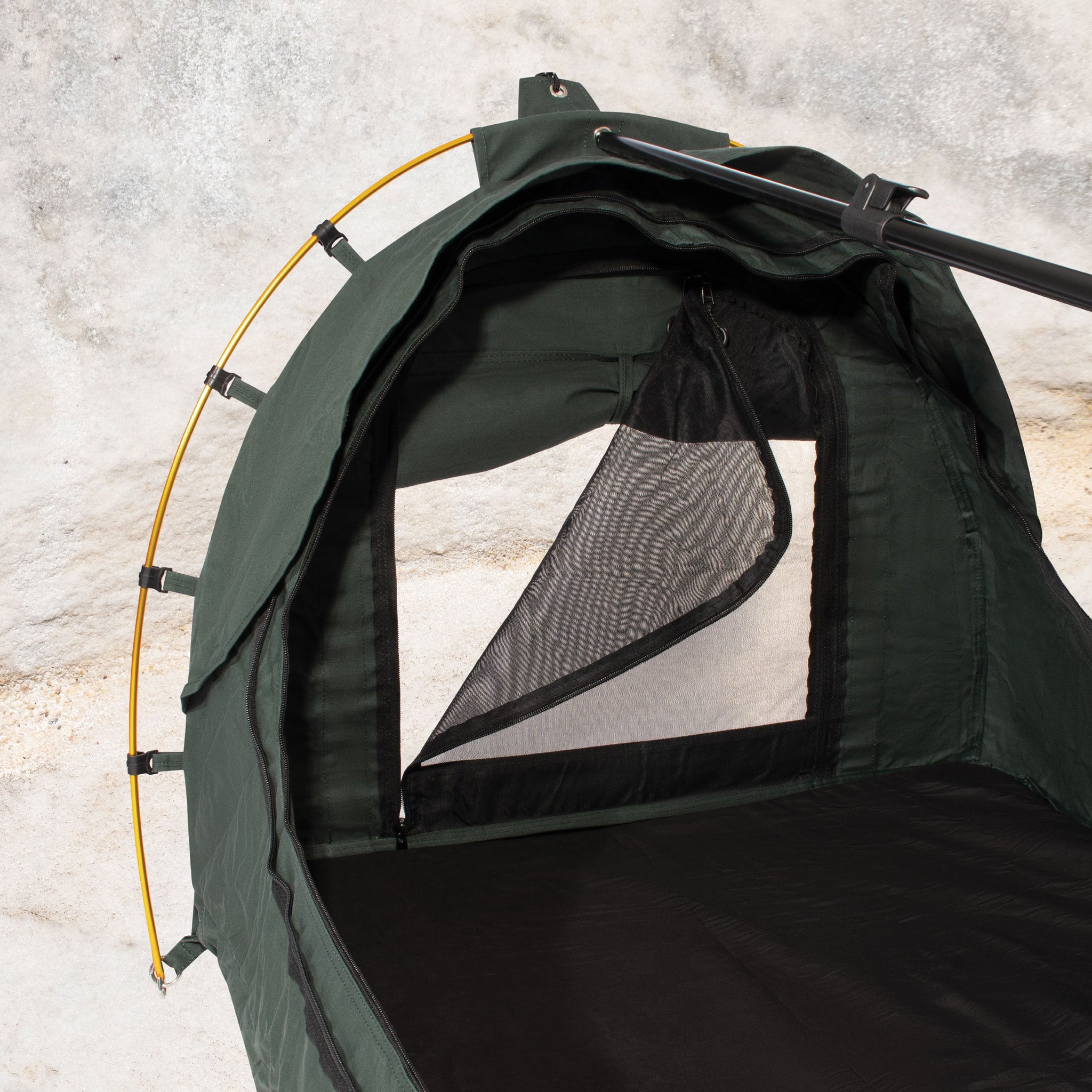 - Close to nature= The top canvas flap and mesh layer can unzip and fold to the foot end of the swag, giving you a full view of the night sky and providing maximum airflow on those warmer nights