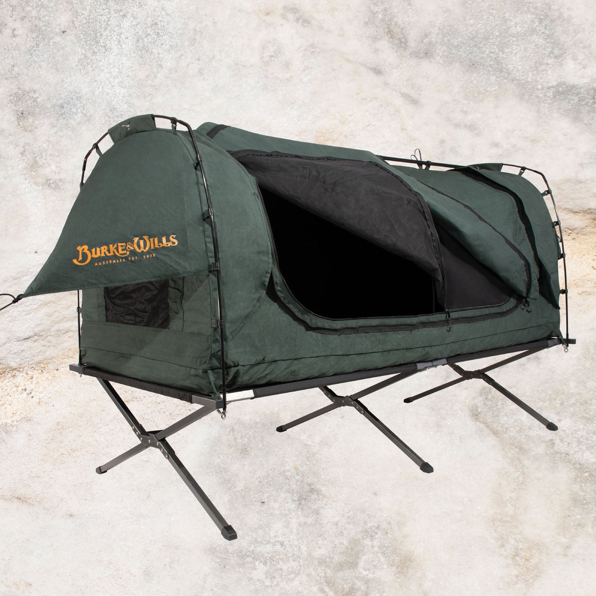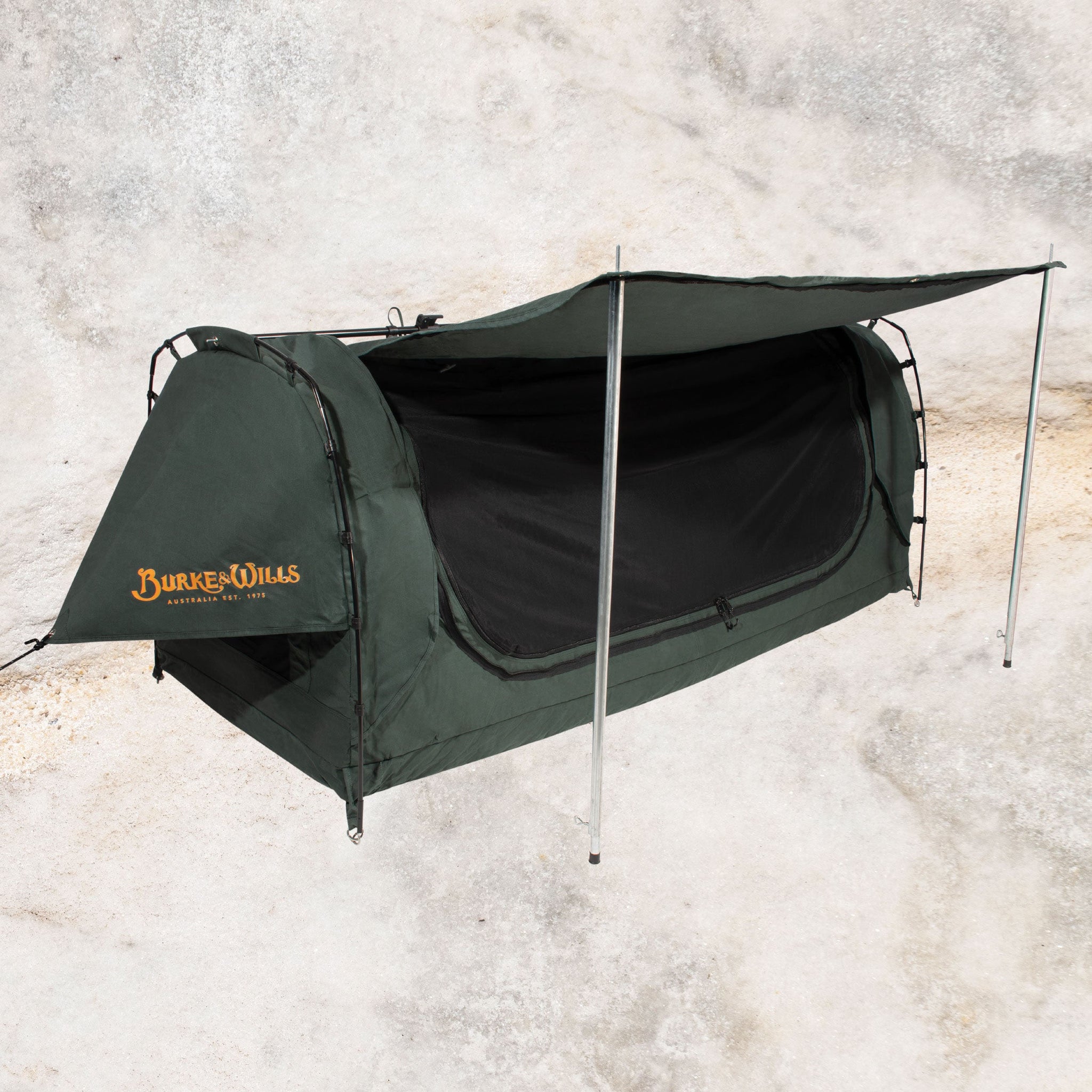 Burke & Wills swags feature our very own and original Australian designed STORMGUARD canvas. This heavy duty and durable 15oz cotton/polyester canvas has been constructed using a tight and tough grid shaped ripstop weave. Our advanced and technically treated canvas is waterproof as well as mould and decay resistant. It provides for superior breathability and airflow keeping you protected and comfortable in all weather conditions.