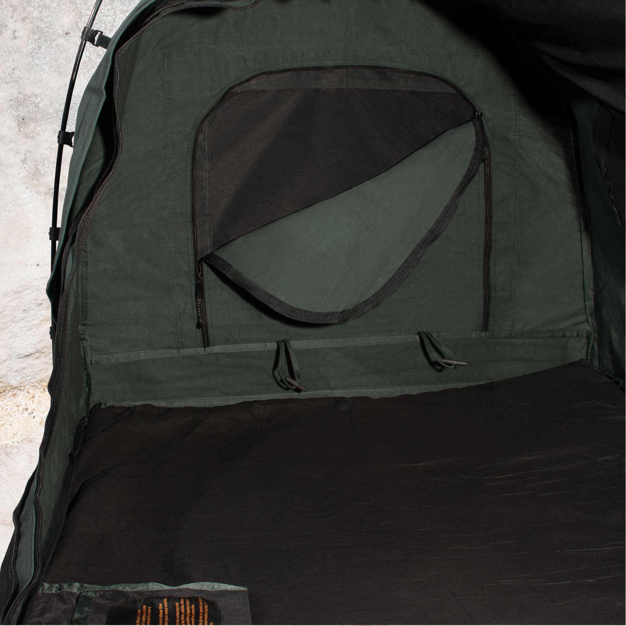 - Close to nature= Both the canvas and fly mesh sides can unzip and roll up to the top. This allows entry from both sides, added ventilation and a view of the night sky