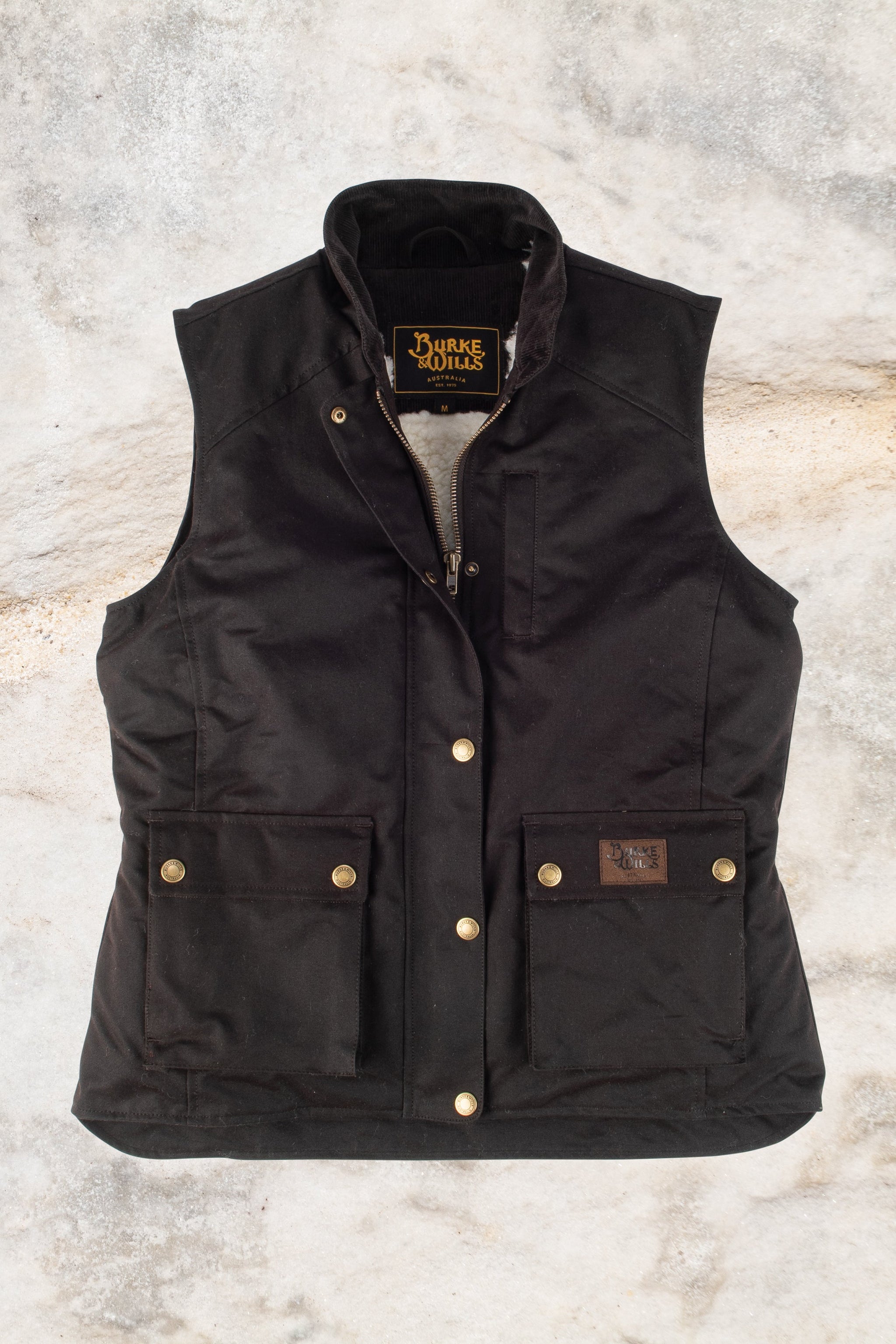 Burke & Wills highly durable 12oz Cotton Dri-Tec Oilskin fabric Womens Derwent Vest