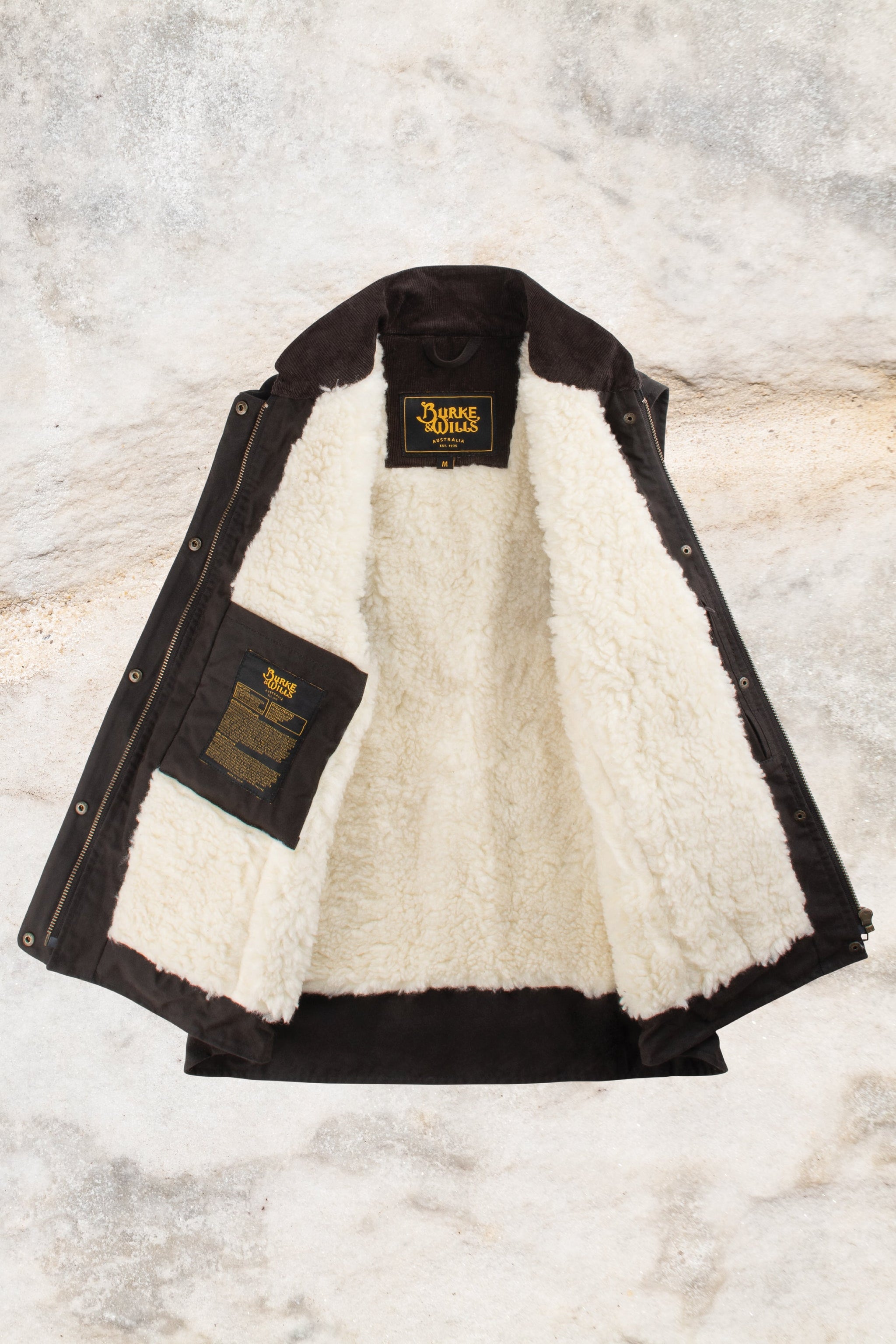 The Burke & Wills Womens Derwent Vest is ideal for those cooler months. It is made from highly durable 12oz Cotton Dri-Tec Oilskin fabric and has a chunky sherpa lining which will keep you extra warm. The vest features a corduroy lined collar, elastic trim detail in the back at sides and multiple pockets for extra storage and functionality.
