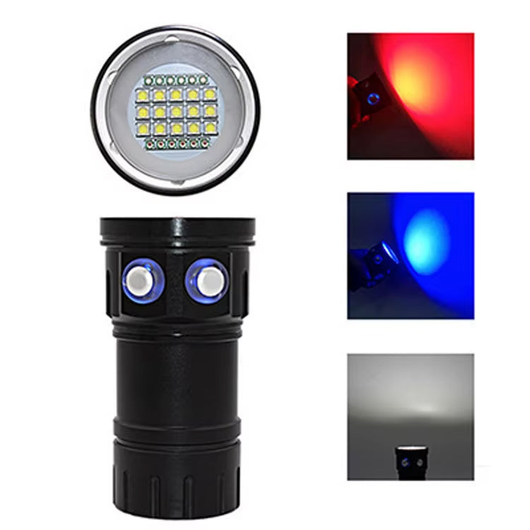 The perfect High power torch for illuminating outside ideal for videoing at night and under water White, Blue, Red light for all scenarios blue is best underwater of course. Â
