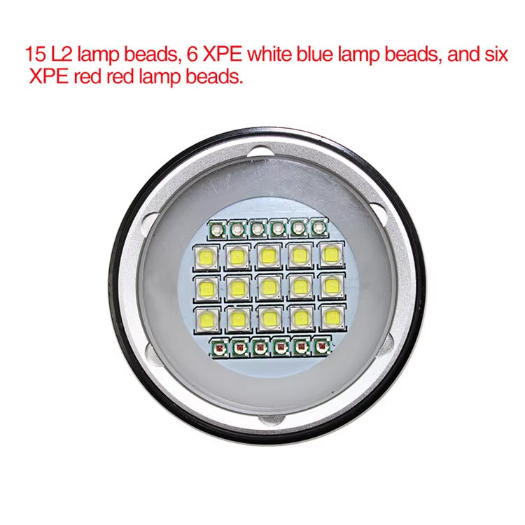 Bulbs: 15pcs 5050 white light, 6pcs XPE red light R5, 6pcs XPE blue light R5
