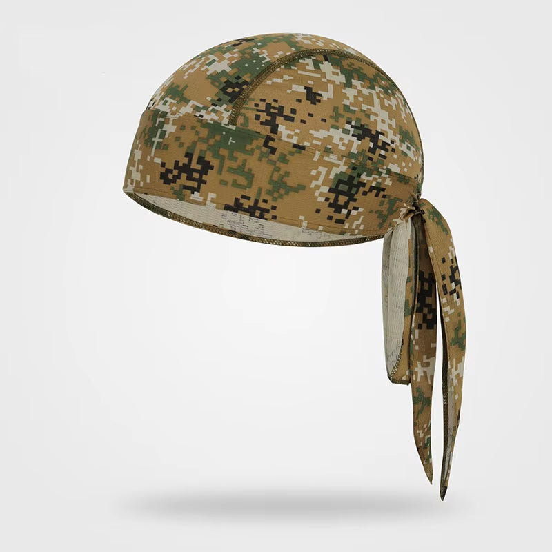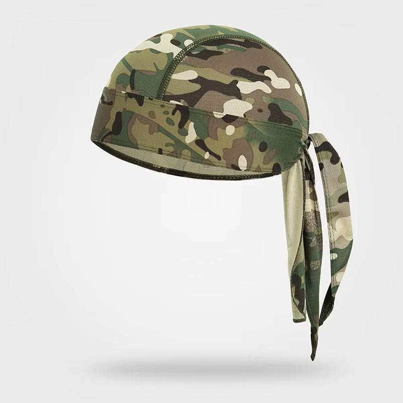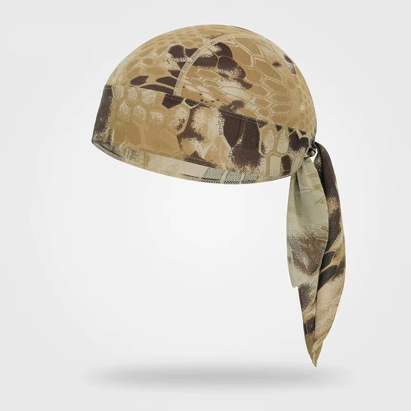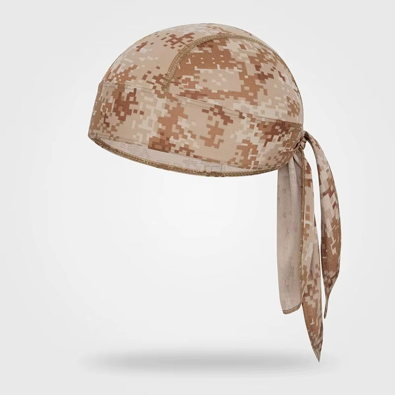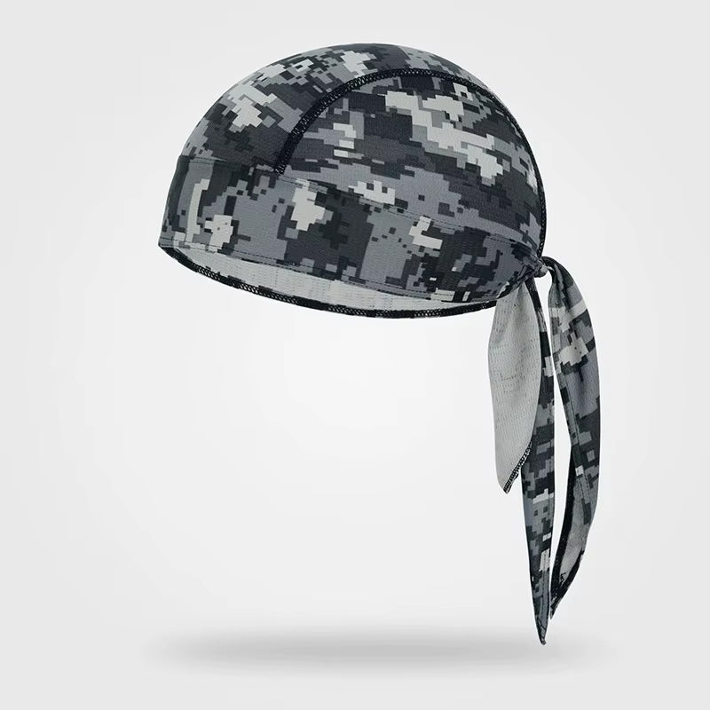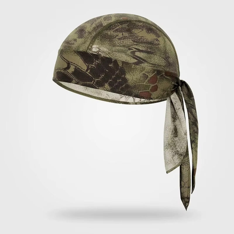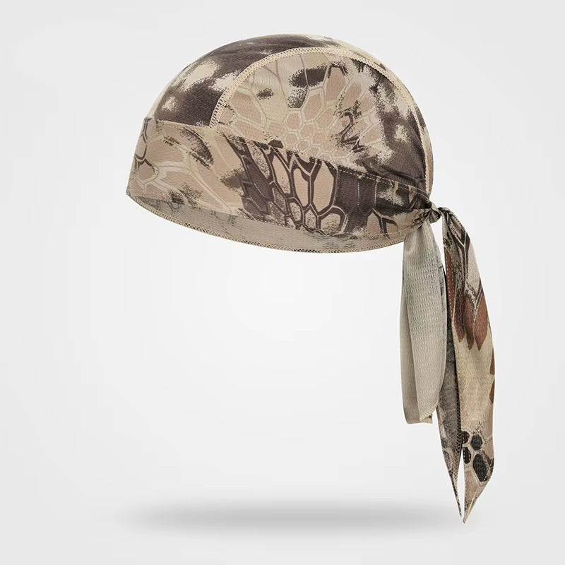 Fitted skull cap looks like a bandanna but is much easier to put on!